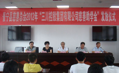 8月24号上午,景宁县慈善总会在民政局五楼隆重举行2012年“三川控股慈善助学金”发放仪式,县人大常委会副主任夏培玲、县慈善总会会长彭岳舜、三川控股总裁林建华等参加了发放仪式并讲话。
