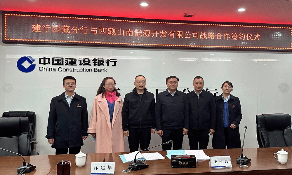 2023年3月15日,在中国建设银行股份有限公司西藏自治区分行5楼会议室,我集团下属子公司西藏山南能源开发有限公司与中国建设银行西藏自治区分行签订了《战略合作协议》。基于双方的战略协作关系,建行西藏分行积极支持山南能源及其所属单位在水电开发、光伏等新能源开发、运营、生态环保与工程承包等业务领域的发展,特别是西藏自治区“十四五”规划等相关国家和自治区重要战略项目的建设,积极创新融资模式,深化产融结合并开展深入合作。山南能源利用自身资源和行业优势向建行西藏分行提供必要的信息和便利。建行西藏分行将及时扩大融资支持额度,满足山南能源及其所属单位的用信需求,建行西藏分行将对山南能源及所属单位在战略合作期内提供不低于20亿元的授信额度保障。