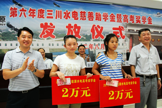 8月24日上午,盐津公司在三楼多功能厅举行第六年度三川水电慈善助学金暨高考奖学金发放仪式。
